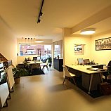 Inrichting van het eigen kantoor van Homelior in Londerzeel. Wat voordien een eethuis was, werd omgebouwd tot een strakke, open kantoorruimte.